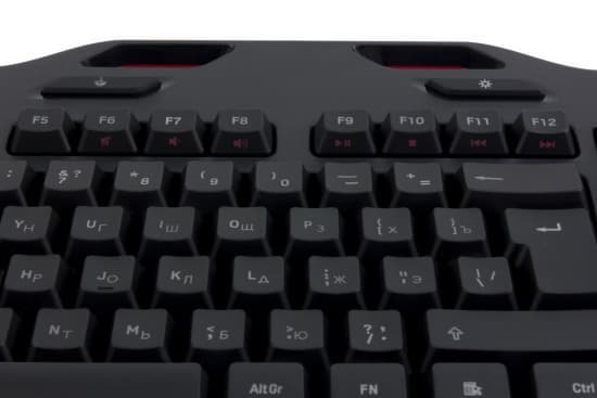 В Logitech G105 применяется европейская раскладка, с двухэтажным Enter’ом и укороченным левым Shift’ом. Место правой клавиши Win занимает Fn, с помощью которой реализованы мультимедийные функции.