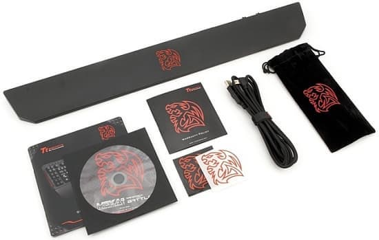 - руководство по быстрой установке, гарантийную брошюру, диск с драйверами и две наклейки с логотипом Tt eSPORTS.