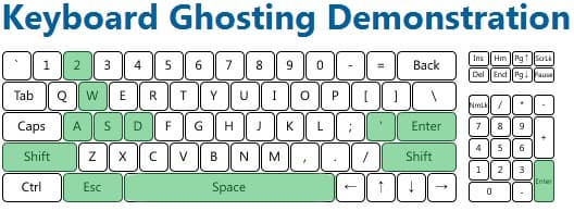 Проверка на фантомные нажатия, проведенная с помощью Microsoft Keyboard Ghosting Demonstration, показала, что никаких проблем с одновременным нажатием каких-либо клавиш у клавиатуры нет.