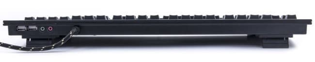 В правой части клавиатуры, с торца находятся гнезда для микрофона и наушников и пара разъемов USB 2.0. Размещены они очень близко друг к другу, поэтому подключить сразу две флэшки в большинстве случаев не удастся. Соединяются USB-разъемы с тем же портом компьютера, что и клавиатура.