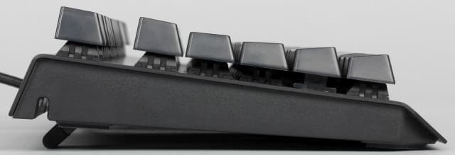Тактильно переключатели оказывают умеренное сопротивление, и субъективно кажется, что они жёстче, чем близкие по параметрам переключатели Cherry MX Red и Silver. Перед выбором рекомендуем опробовать клавиши в магазине, чтобы составить собственное мнение. К четкости работы механизмов переключателей клавиш у нас нет претензий, все нажатия фиксируются без ошибок. Клик хорошо различим и при наборе текстов удобен. Если хочется поменьше шума при использовании клавиатуры, то можно выбрать вариант с переключателями Rzer Orange: они без клика, поэтому менее шумные.