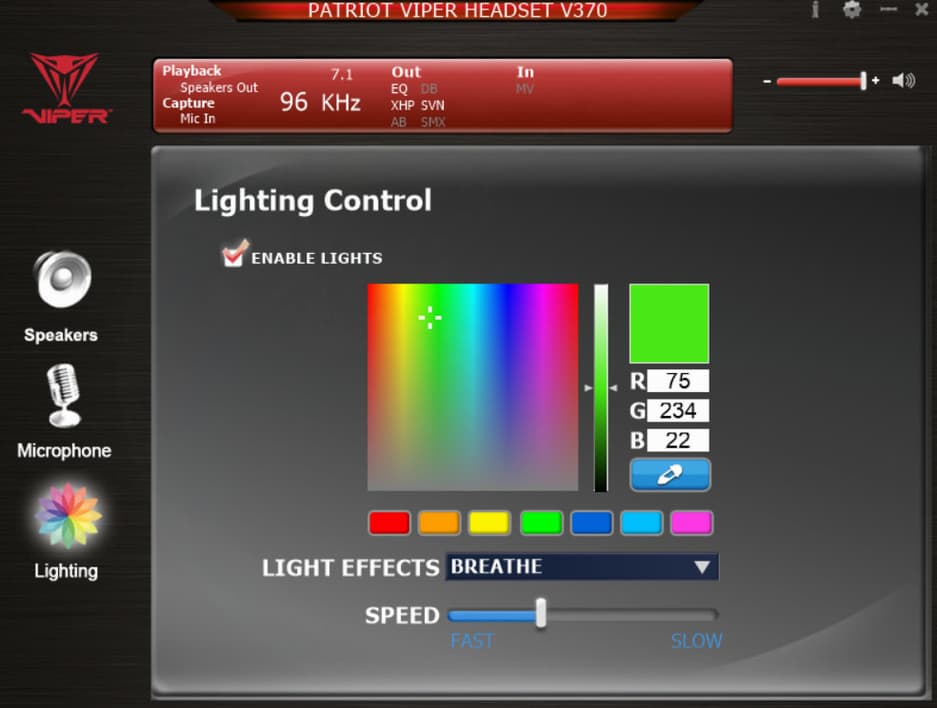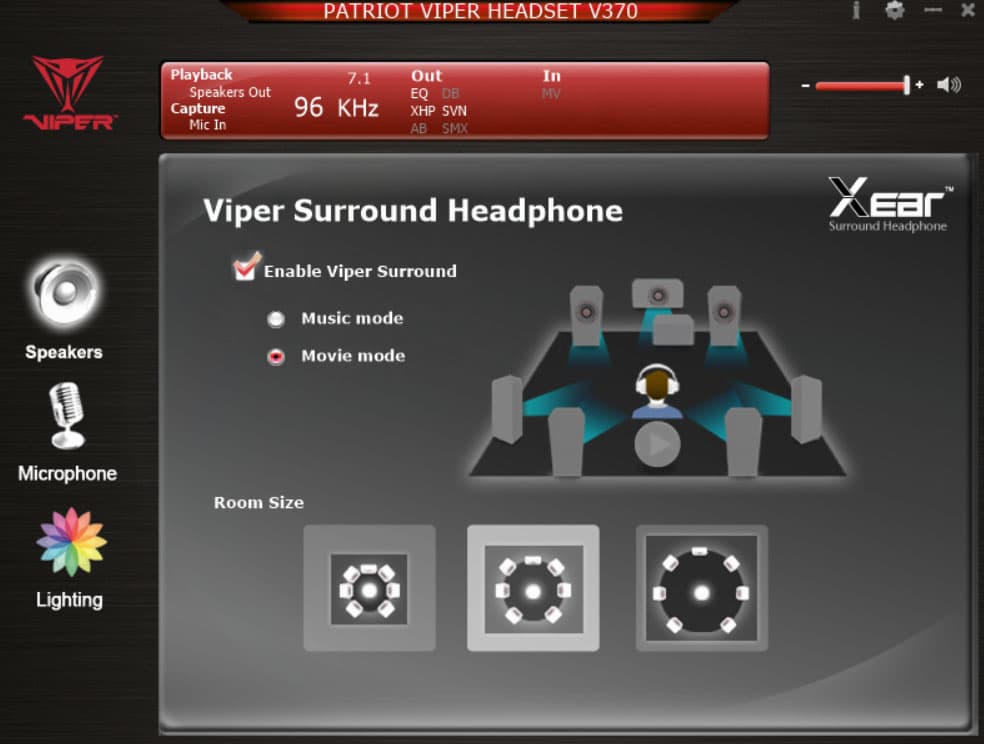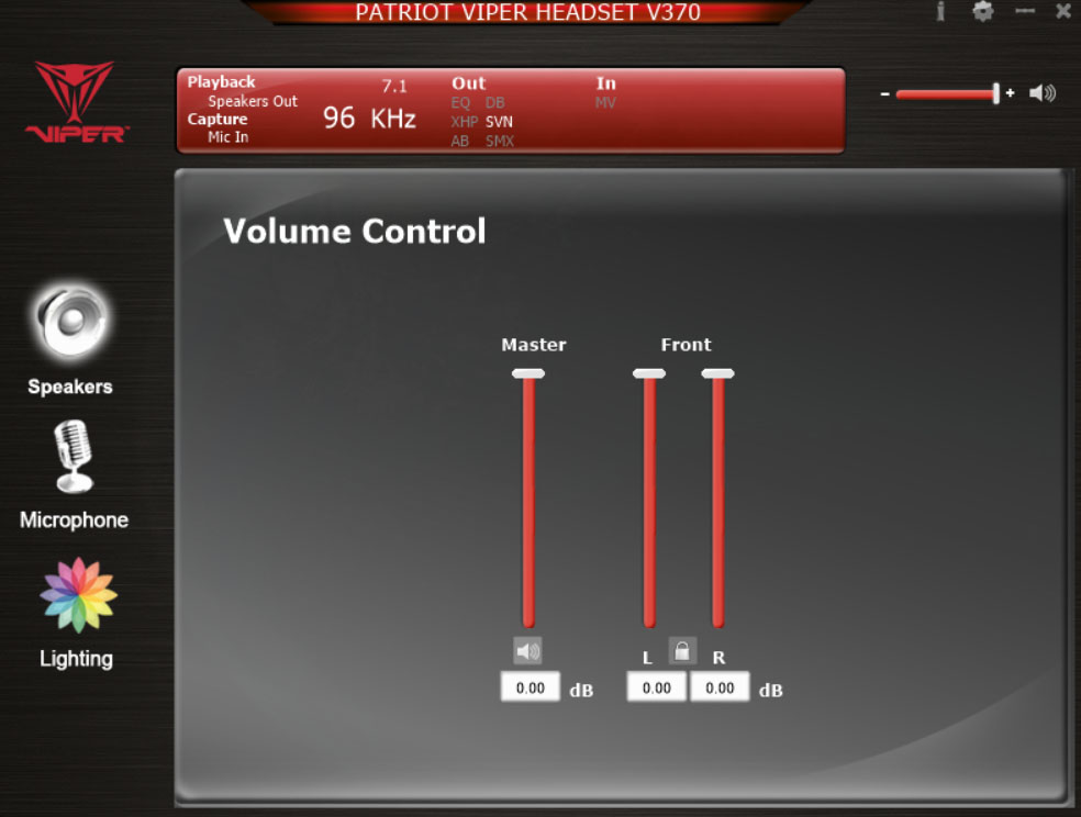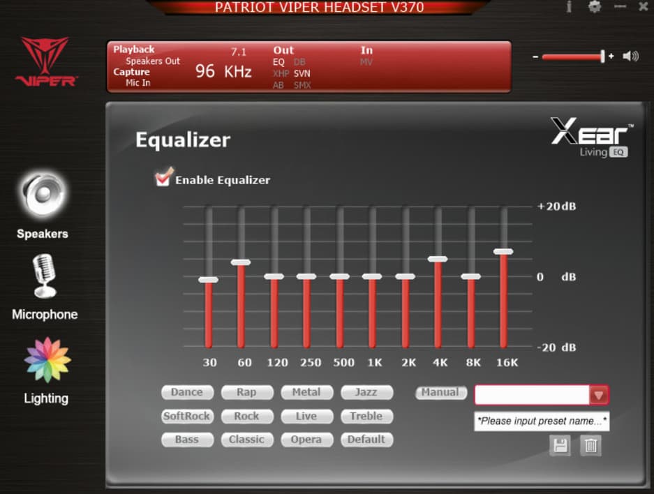 ПО использует распространенные на рынке технологии Cmedia Xear и предоставляет возможность гибкой настройки устройства. Здесь программно реализовано управление динамиками, микрофоном и подсветкой гарнитуры.