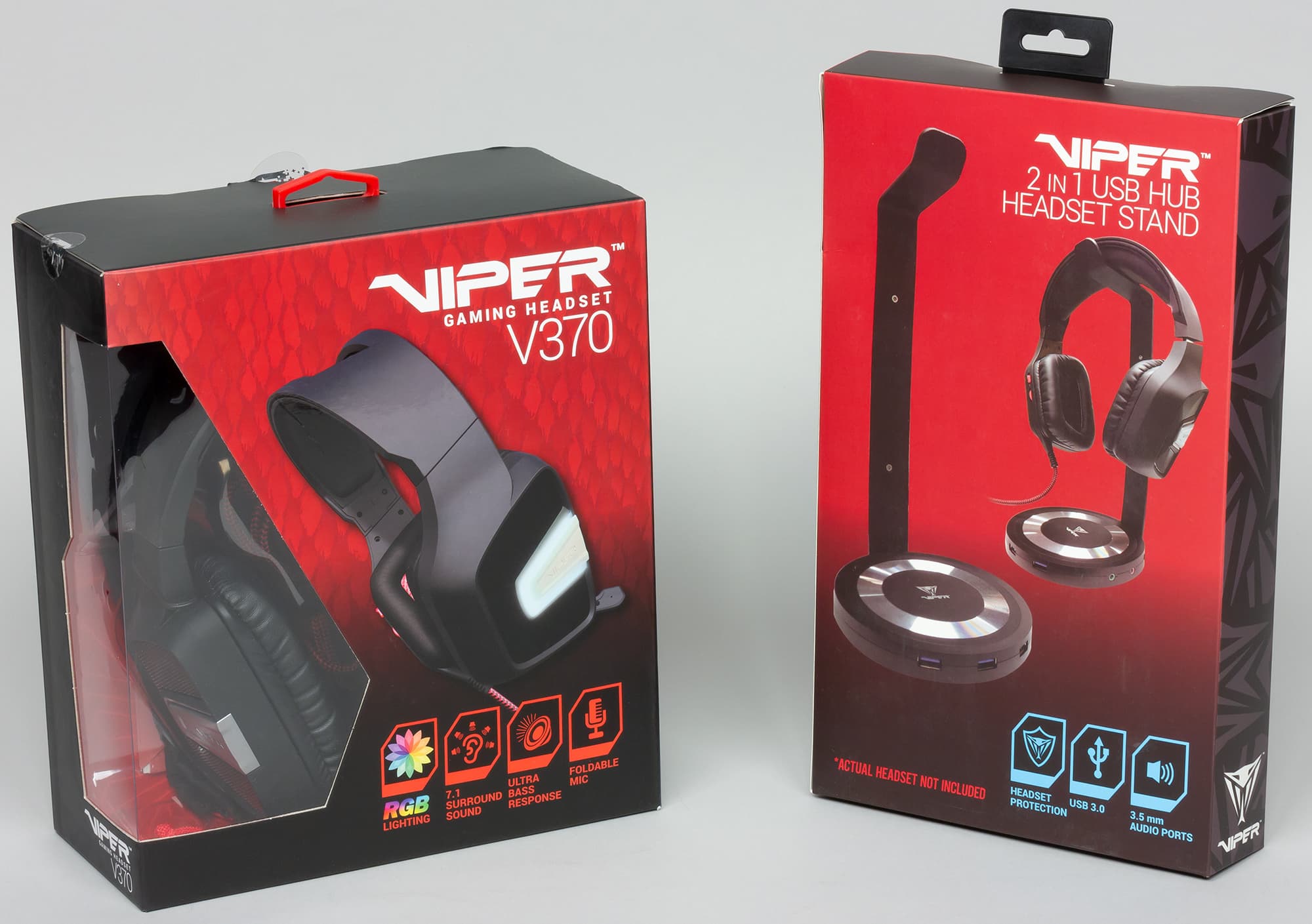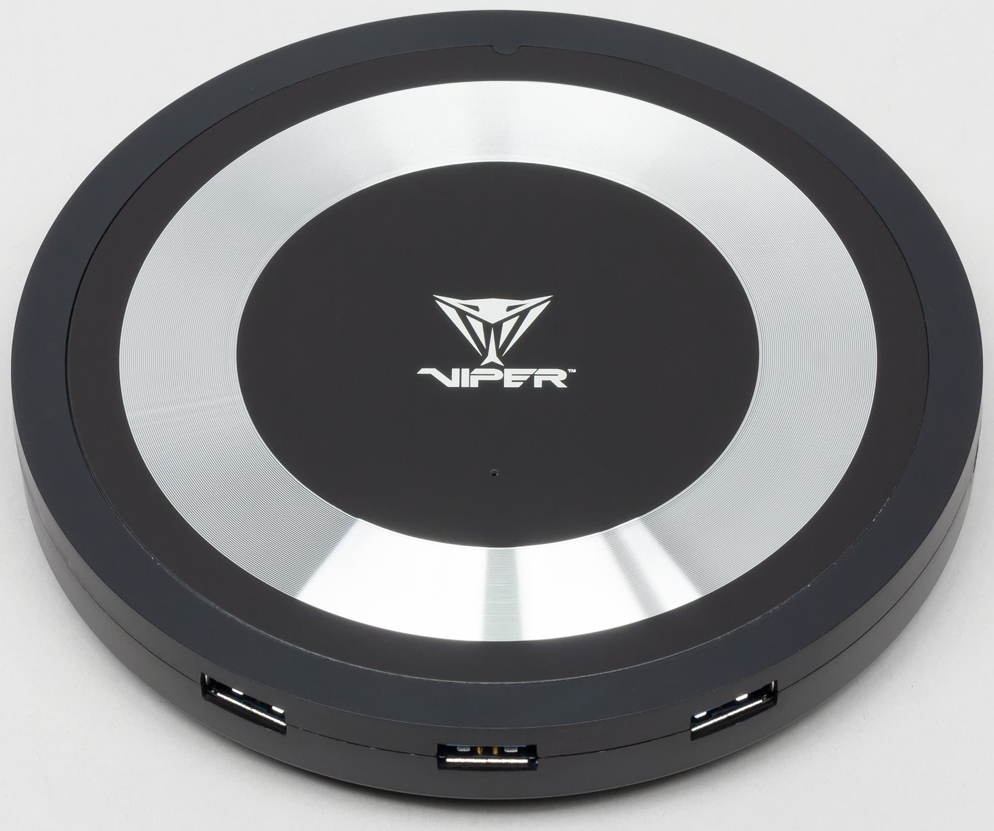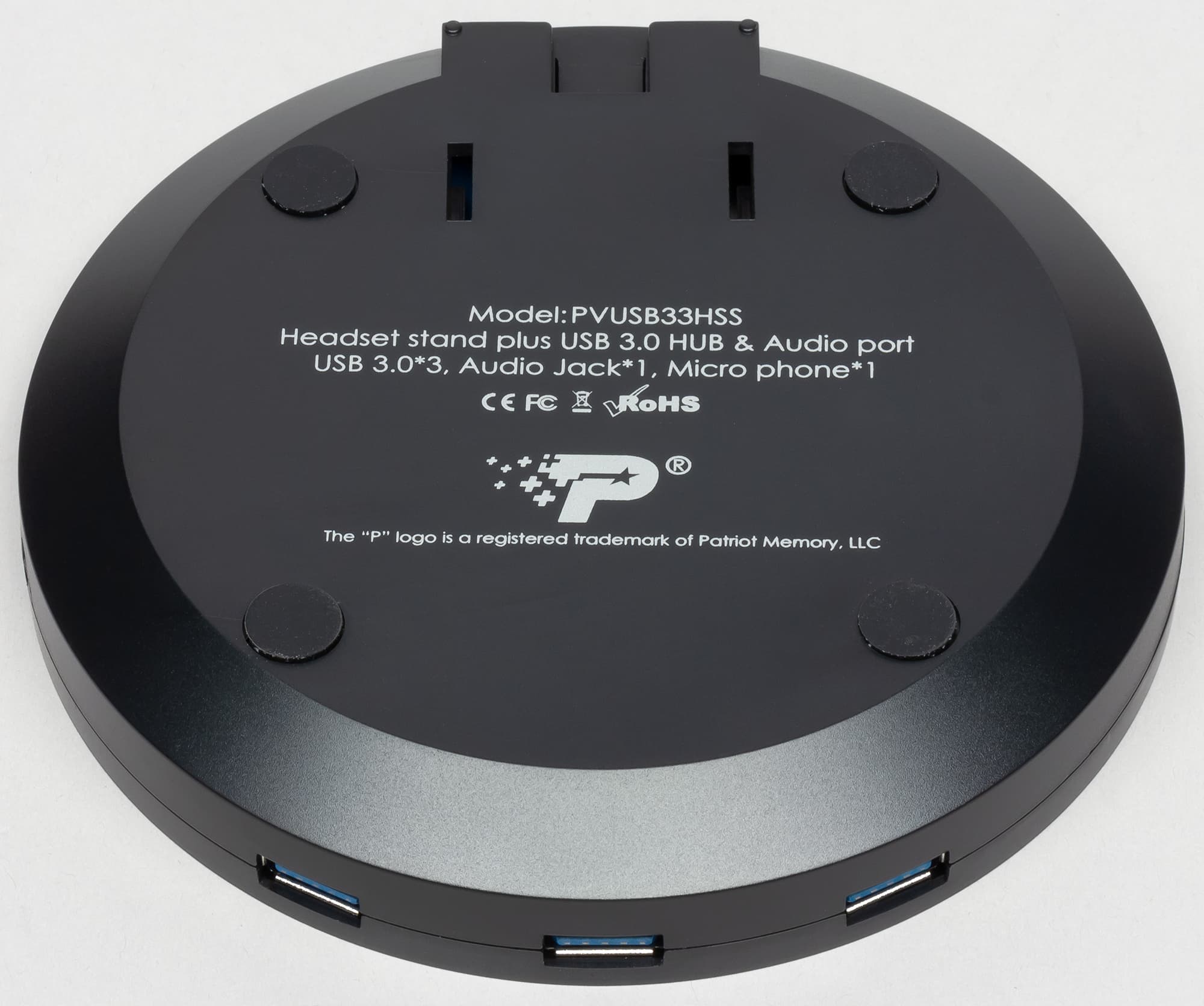 Patriot Viper Headset Stand подключается к компьютеру по USB и сама имеет три разъёма USB 3.0 (то есть служит хабом), 3.5-миллиметровых разъём под наушники и такой же микрофонный вход, а также кнопку on/off.