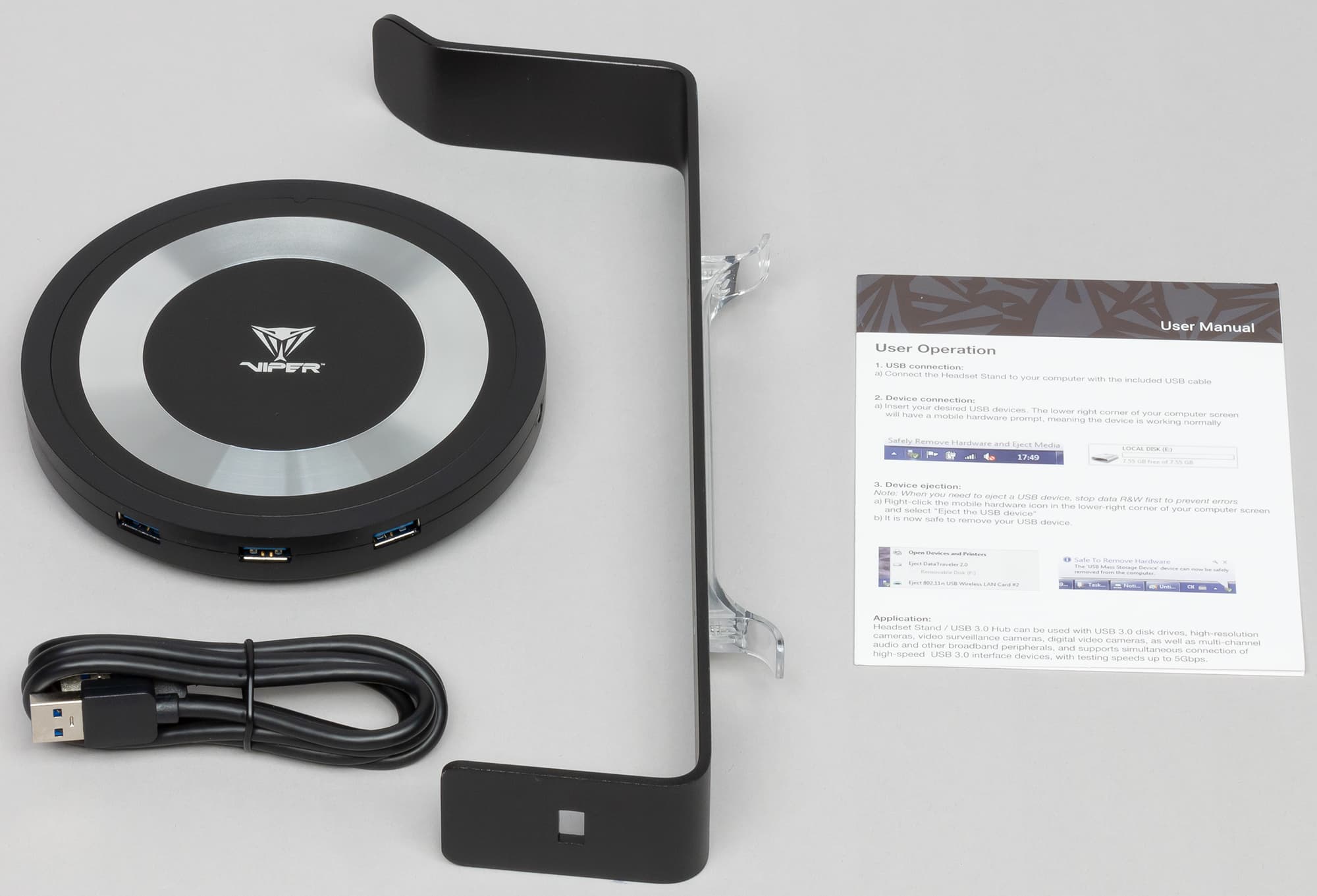 В комплект к гарнитуре производитель предлагает подставку, совмещённую с USB-концентратором.