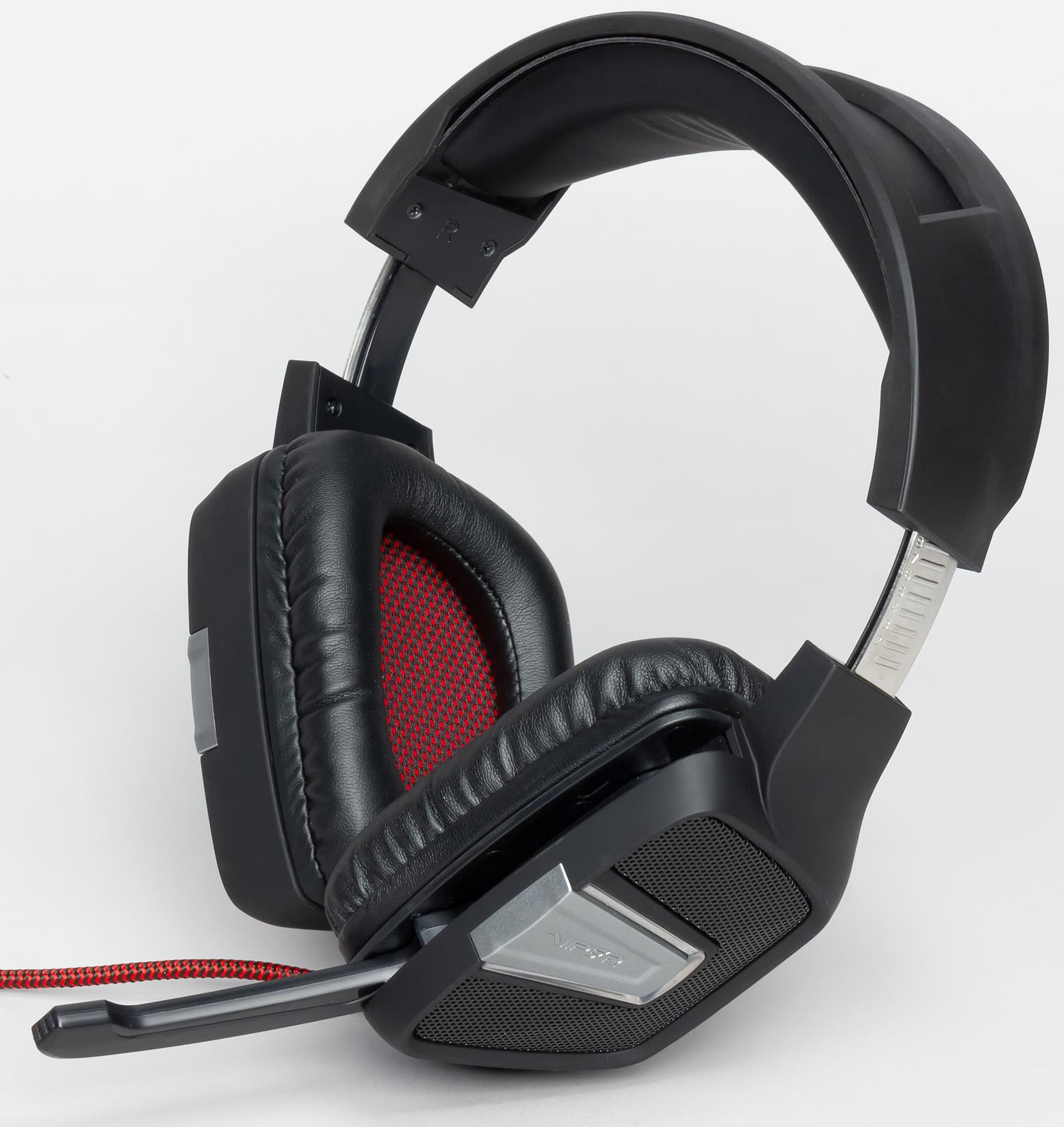 На боковых панелях находятся сетчатые металлические пластины и светодиодная подсветка. Подкладка на оголовье и амбушюры сделаны из кожзама с набивкой. Амбушюры к чашкам крепятся через дополнительную пластиковую панель и легко снимаются при помощи специального приспособления, входящего в комплект.