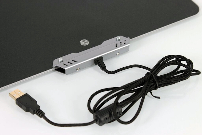 В верхней части устройства расположена алюминиевая скоба (или брекет), закрепленная на двух болтах. Вероятно, скоба прикрывает управляющую подсветкой электронику. К скобе подходит интерфейсный кабель, защищённый текстильной оплёткой. Рядом со скобой, на поверхности коврика, размещён сенсор в виде отпечака пальца, который срабатывает от прикосновения. Касание сенсора изменяет режим работы подсветки коврика. Никакого специального программного обеспечения не требуется, подключил коврик к порту USB — и можно играть, изменяя режим подсветки при необходимости.