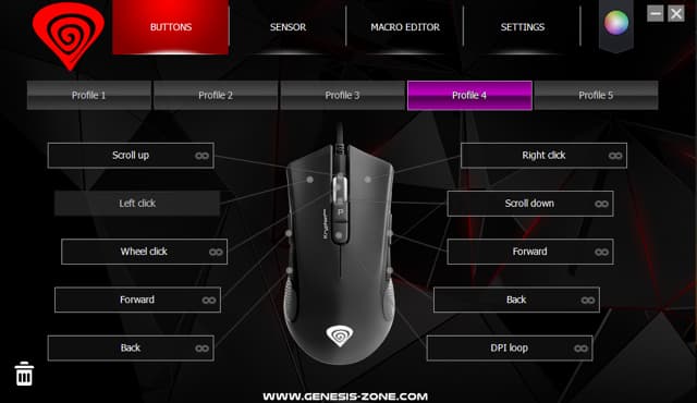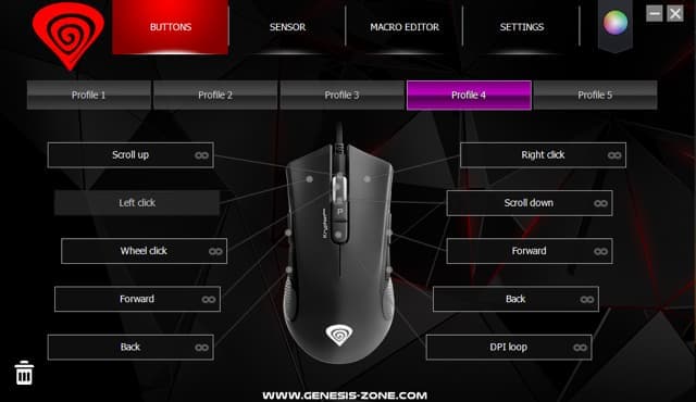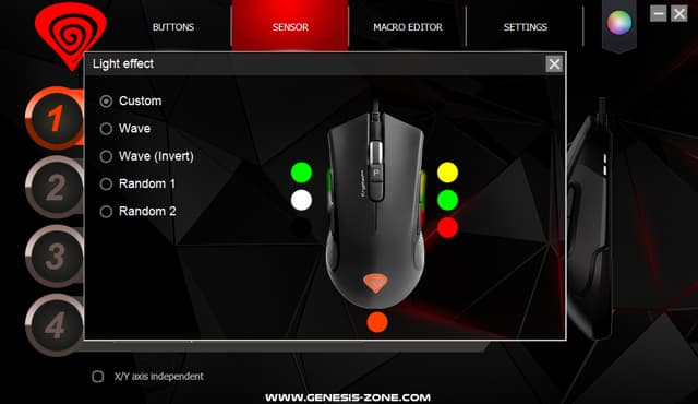 Производитель снабдил Krypton 800 программой, позволяющей менять назначения кнопок (всех, кроме отвечающей за смену профиля), разрешение сенсора, частоту опроса, а также сохранять в памяти устройства полезные во многих играх макросы и управлять подсветкой.