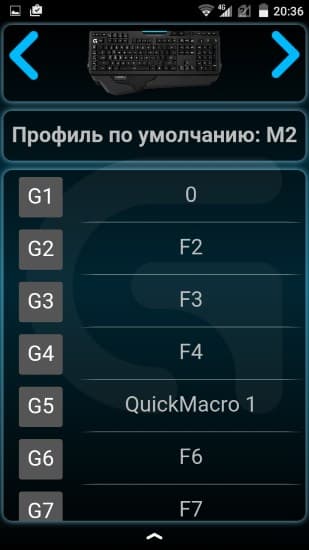 На четвертом экране доступен актуальный список команд для макроклавиш. Судя по верхней части, ПО рассчитано и на одновременное использование с мышкой Logitech. Через настройки можно закрепить приложение поверх остальных, разрешить выключение экрана, отредактировать список игр.