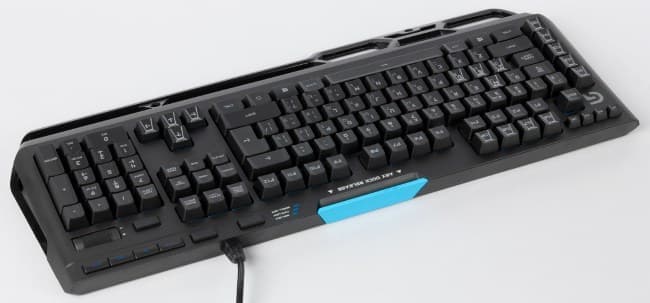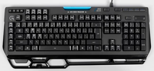 Клавиши размещаются в углублениях корпуса и при этом почти в него не утоплены. Раскладка клавиатуры соответствует возлагаемым ожиданиям: двухэтажный Enter и длинный левый Shift. Программируемых клавиш над блоком F5-F9 нет, так что с быстрым сохранением и загрузкой не ошибиться. Единственное, что вносит путаницу при слепом наборе, — это блок программируемых клавиш G1-G5. Он расположен слева от тех кнопок, которые в обычных клавиатурах выровнены по левому краю, так что вместо Ctrl часто попадается G5, вместо Shift — G4 и т. д.