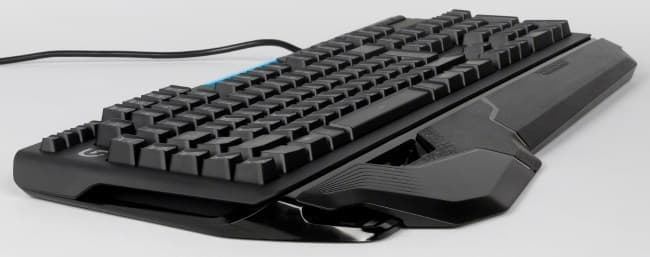 Клавиатура неплохо смотрится на столе и без подставки, что позволяет равноценно использовать целых три варианта для подъема запястья. Такая кастомизация похвальна. И, конечно, же, подсветка отлично показывает себя в темноте. Ко всему прочему, клавиатура является довольно тихой — большое преимущество для тех, кто играет по соседству со спящими людьми.