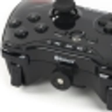 Однако точной копией Mad Catz C.T.R.L.R. все-таки не является. Кроме логотипа производителя, нанесенного на правую рукоять, устройство отличают кнопки громкости, перемотки и воспроизведения/паузы в верхней части, пластиковая головка крепежного винта держателя для мобильных устройств и трехпозиционный переключатель режимов работы.