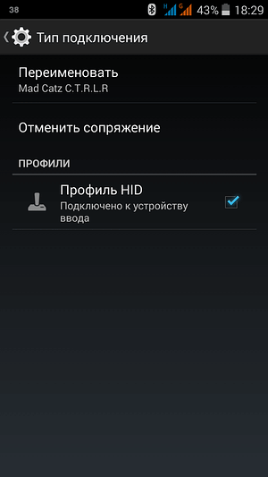 Для сопряжения с мобильными устройствами требуется нажать и удерживать центральную кнопку до мигания синим и красным цветами. Подключенный геймпад определяется как Mad Catz C.T.R.L.R.