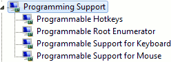 Программная поддержка реализована посредством собственных виртуальных устройств, поэтому к Mad Catz C.T.R.L.R Gamepad (HID) в разделе Устройства HID (Human Interface Devices) в диспетчере устройств добавляется раздел (!) Programming Support, включающий в себя Programmable Hotkeys, Programmable Root Enumerator, Programmable Support for Keyboard и Programmable Support for Mouse.