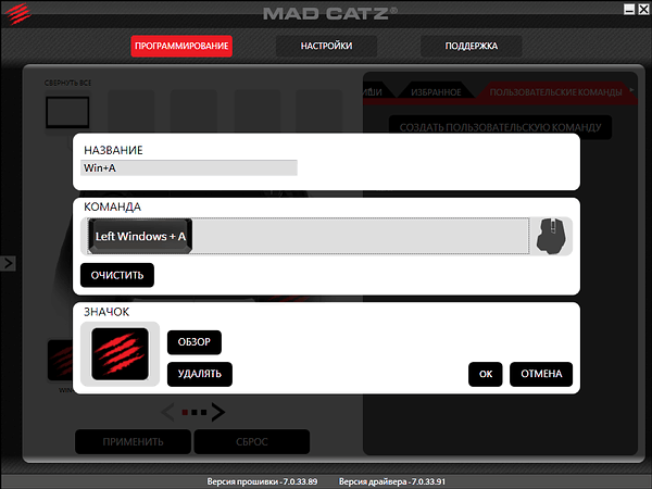 Возможно создание пользовательских сочетаний кнопок (макросов).