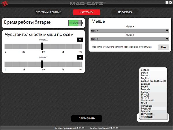 При тестировании использовались драйверы версии 7.0.3.91 и ПО (в локализованном варианте почему-то называемое «прошивкой» вместо «Software») версии 7.0.33.89.