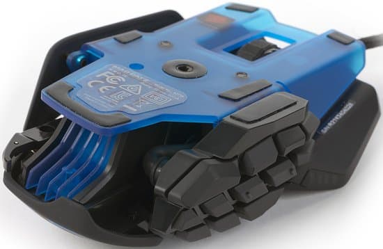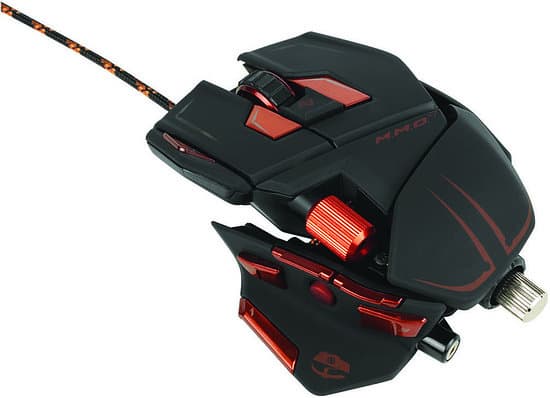 Не осталась в стороне многокнопочного бума и американская компания Mad Catz Interactive, Inc., представившая сначала под брендом Saitek, а потом и под основным традиционно футуристическую конструкцию под названием Cyborg M.M.O. 7. Она отличается не только фирменной настройкой размеров, но и внушительным весом (около 169 граммов без дополнительных грузиков, добавляющих еще 30 граммов) и не самой лучшей эргономикой из-за наличия на боковой панели джойстика, сбивающего позиционирование, в дополнение всего к четырем боковым кнопкам.