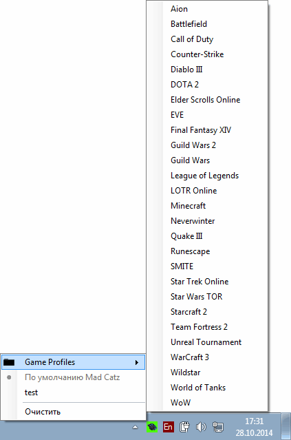Штатное ПО Mad Catz представляет собой два отдельных приложения — резидентный RAT_MMO_Profiler.exe, значок которого появляется в системном трее,