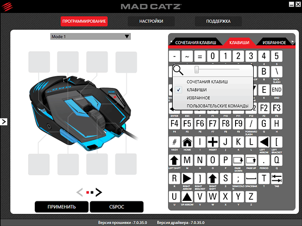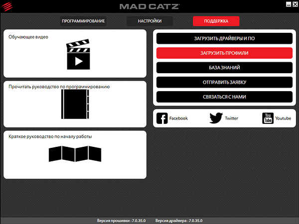 В отличие от производителей, унифицирующих ПО для своей периферии, Mad Catz предлагает скачивать и устанавливать программу и драйверы индивидуально для каждой модели в зависимости от операционной системы.