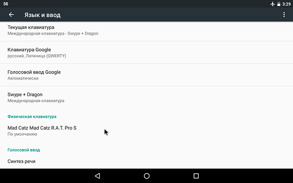 При подключении к планшету ASUS Nexus 7 2013 (версия Android 6.0.1) через OTG-кабель мышь определяется как Mad Catz Mad Catz R.A.T. Pro S.