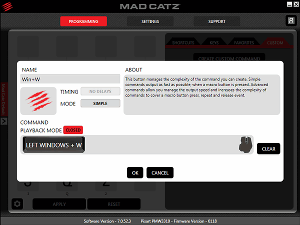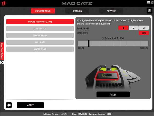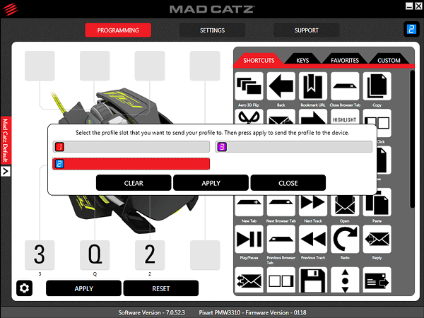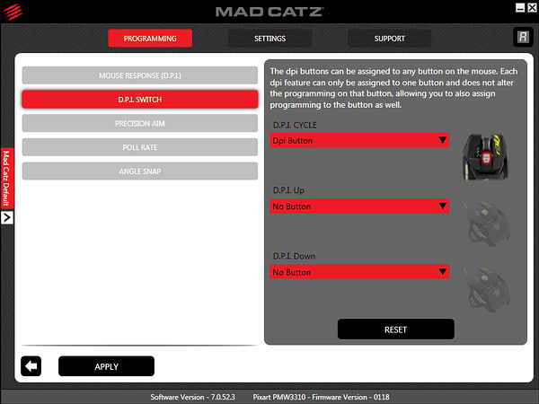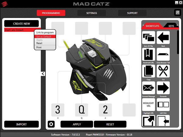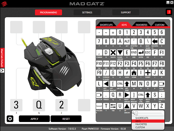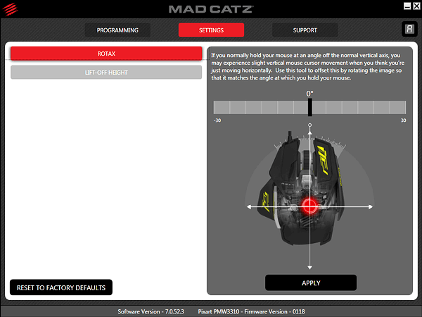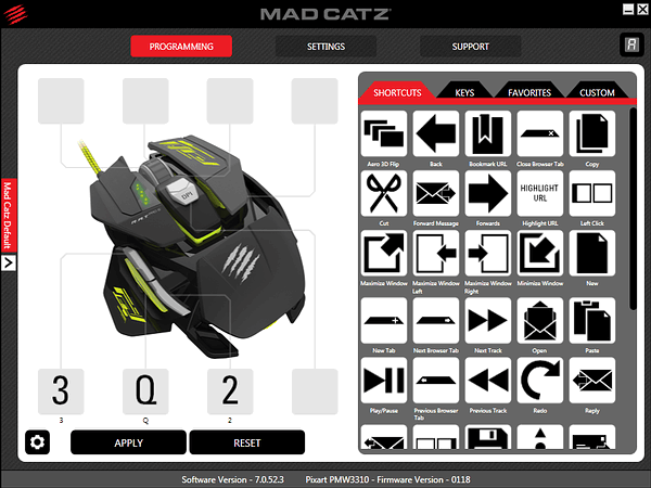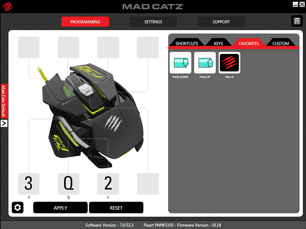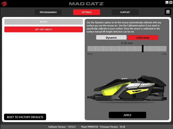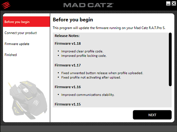 Серия PRO получила встроенную память, что позволяет использовать программное обеспечение без установки драйверов виртуальных устройств. Mad Catz R.A.T. PRO S определяется как HID-совместимая мышь.