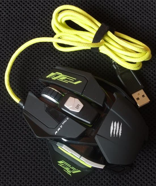 Политетрафторэтиленовые (PFET) ножки и статусно позолоченный USB-разъем традиционны для игровых мышей от Mad Catz. Кабель Mad Catz R.A.T. PRO S длиной 1,8 м привлекает внимание ярко-желтым цветом и нетипичной толщиной, особенно заметной на фоне компактных размеров мыши, составляющих примерно 111×86×35 мм с учетом площадки под большой палец. Хомут с липучкой для фиксации кабеля в свернутом состоянии является съемным.
