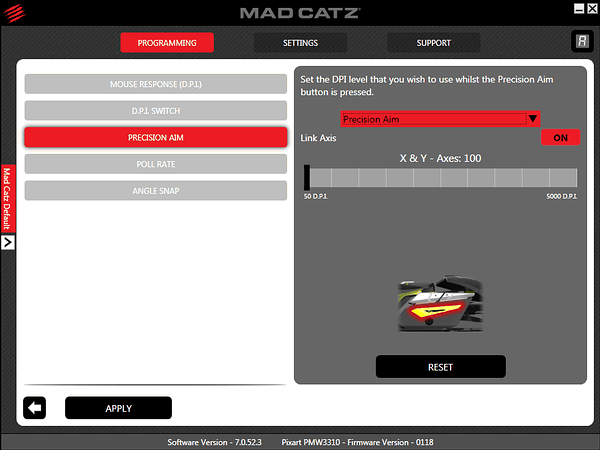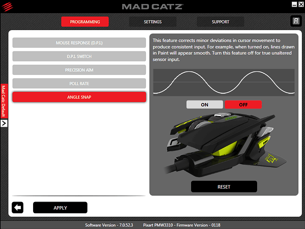 Отдельно можно отметить возможность отключения угловой привязки, обеспечивающую увеличение точности позиционирования в играх.