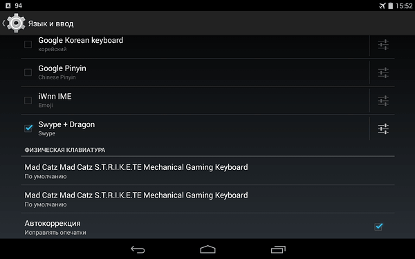 При подключении к планшету ASUS Nexus 7 2013 (версия Android 4.4.2) через OTG-кабель Mad Catz S.T.R.I.K.E. TE определяется как 2 (!) независимых клавиатуры.