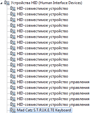 Результат установки драйверов тоже проходит по разряду «не как у всех». Кроме появления в разделе «Устройства HID (Human Interface Devices)» непосредственно Mad Catz S.T.R.I.K.E. TE Keyboard, в диспетчере устройств обнаруживается раздел (!) Programming Support, включающий в себя Programmable Hotkeys, Programmable Root Enumerator, Programmable Support for Keyboard и Programmable Support for Mouse.