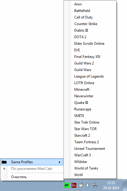 Имеется список готовых игровых профилей с возможностью редактирования, доступно создание собственных.