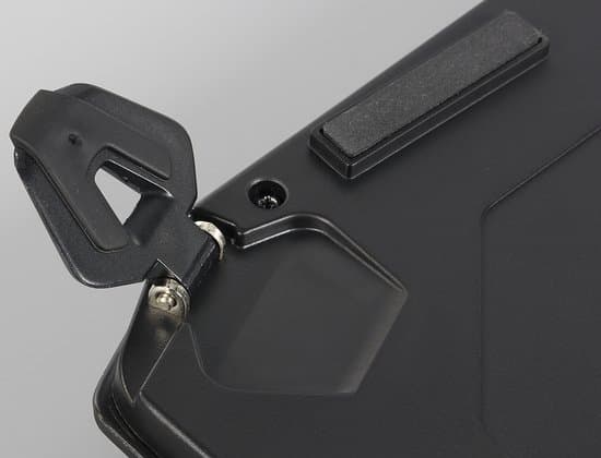 В обычном состоянии устойчивость клавиатуры обеспечивают 6 (!) точек соприкосновения с поверхностью, 4 резиновых ножки и 2 шарнирные стойки для увеличения угла наклона с прорезиненными вставками в сложенном состоянии.