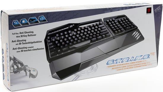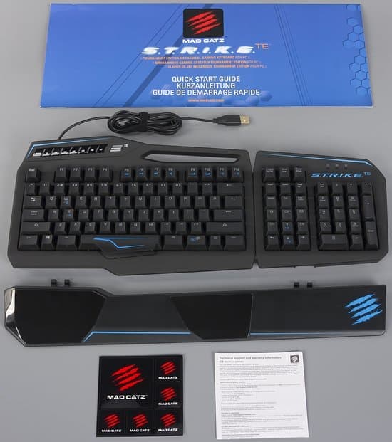 К этому же типу относится и рассматриваемая далее по тексту S.T.R.I.K.E. TE — на момент работы над этой статьей первая и единственная механическая клавиатура компании. Названия с точками после заглавных букв являются частью фирменного стиля, S.T.R.I.K.E. в линейке Mad Catz относится к клавиатурам, а индекс TE означает принадлежность к «профессиональной» серии Tournament Edition.