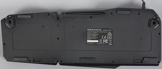 Форма корпуса Mad Catz S.T.R.I.K.E. не располагает к точности измерения размеров, с поправкой на это обстоятельство по максимально выступающим частям они составляют примерно 490 × 190 (254 с подставкой) × 49 мм. Весит устройство без подставки около 1,42 кг, по всей видимости, внутри корпуса расположена утяжеляющая пластина.