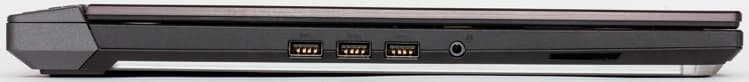 Слева в корпусе ноутбука находятся три порта USB Type-A (3.0) и комбинированный разъём для наушников или микрофона.
