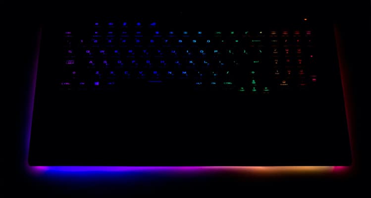Отметим, что по контуру основания корпуса ноутбука проходит светодиодная полоска подсветки.