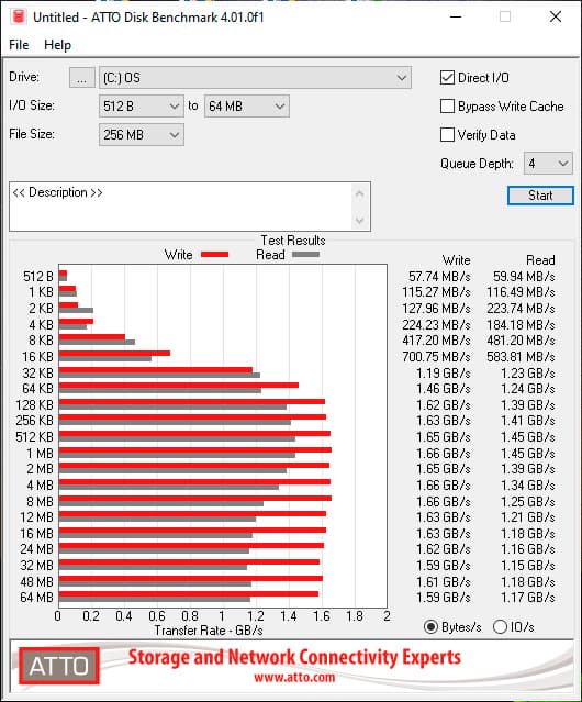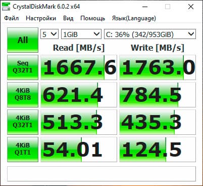 Скоростные характеристики SSD не рекордные для данного класса ноутбуков, но более чем достаточные для любых игровых задач. Приведём несколько результатов его тестирования.