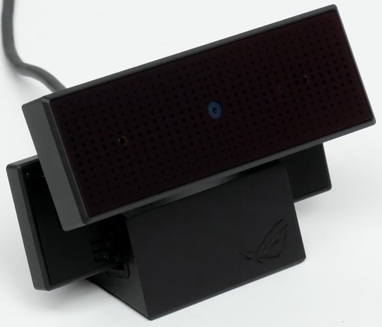 Веб-камера Asus ROG Eye также хорошо знакома нашим постоянным читателям и является отдельным устройством, которое соединяется с ноутбуком через USB-порт и может быть закреплено как сверху на дисплее ноутбука, так и просто установлено в любом другом месте, до которого хватит кабеля.