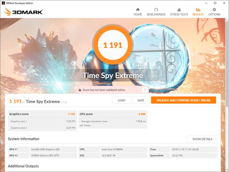 Time Spy Extreme (Balanced, от аккумулятора)