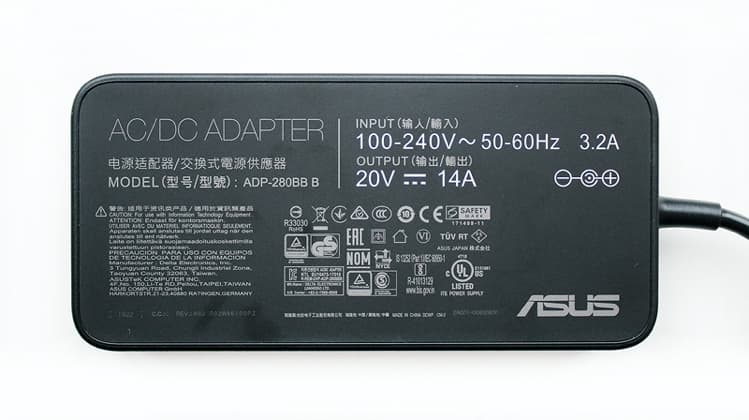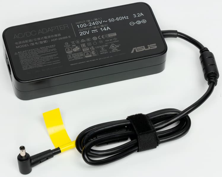 В комплект Asus ROG Strix SCAR III G731GW входит фирменный адаптер питания мощностью 280 Вт (20 В и 14 A).