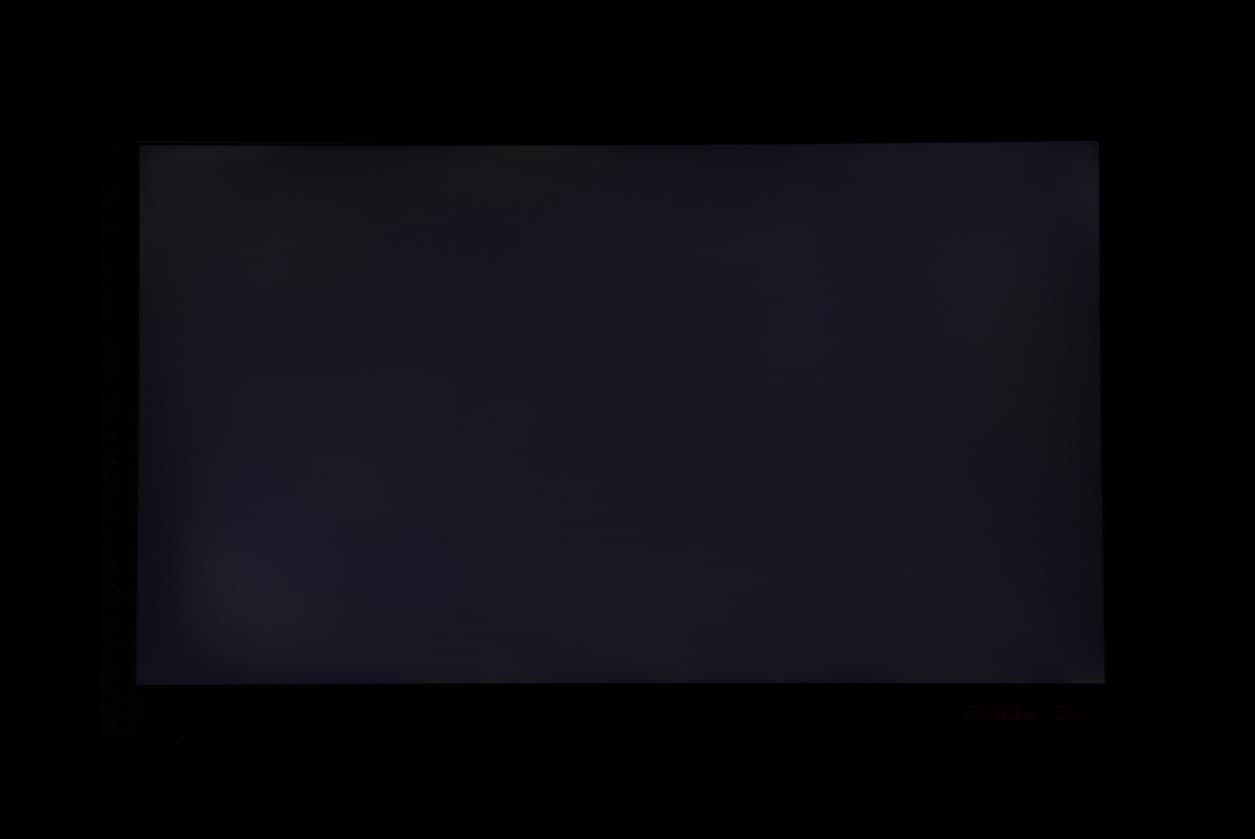 Если отступить от краев, то равномерность белого поля очень хорошая, а чёрного поля и, как следствие, контрастности немного хуже. Контрастность по современным меркам для данного типа матриц типичная. Фотография ниже даёт представление о распределении яркости чёрного поля по площади экрана: