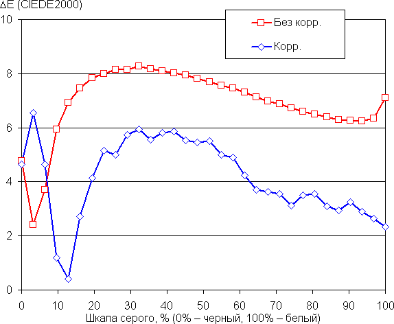 | Яркость белого поля | 291 кд/м² | −6,8 | 3,4 |