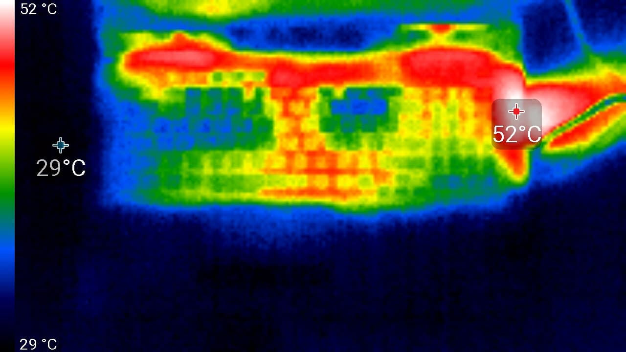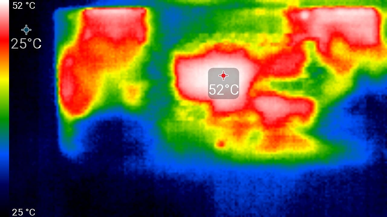 Ниже приведены термоснимки, полученные после долговременной работы ноутбука под максимальной нагрузкой на CPU и GPU:
