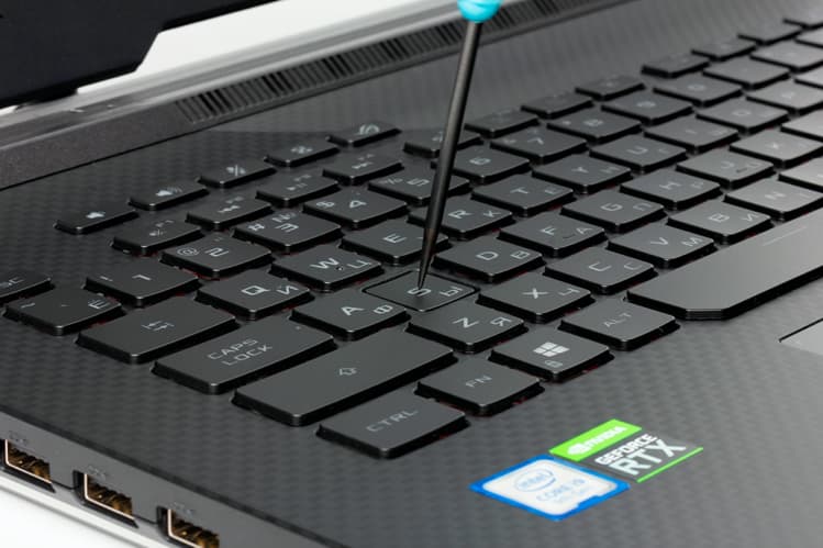 Ход клавиш около 1,5 мм и все они оснащены настраиваемой подсветкой, синхронизируемой с подсветкой в основании ноутбука и любыми другими устройствами Asus.