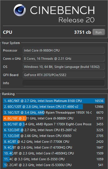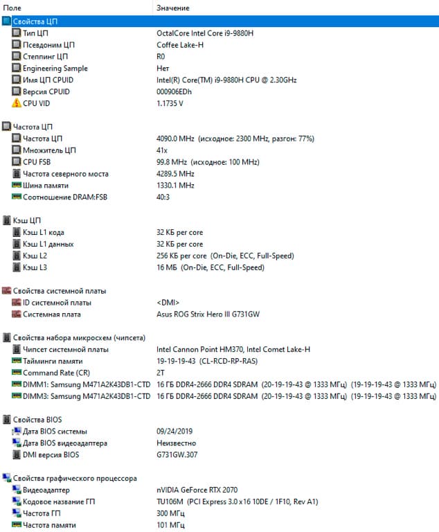 | Процессор | Intel Core i9-9880H (Coffee Lake, 14 нм, 8(16) ядер, 2,3-4,8 ГГц, 45 Вт) | |