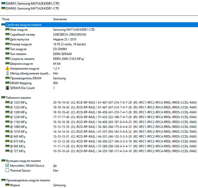 | Оперативная память | 32 ГБ LPDDR4-2666 (2 × 16 ГБ, 2667 МГц, 19-19-19-43 2Т) | |