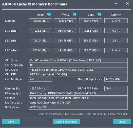 Самое время посмотреть на разницу в производительности процессора и оперативной памяти ноутбука Asus ROG Strix SCAR III G731GW при работе в режиме «Турбо» при питании от электросети и в режиме «Сбалансированный» при питании от аккумулятора.
