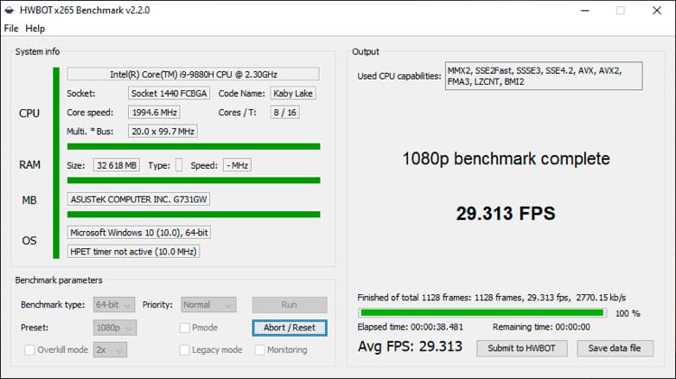 HWBOT x265 (Balanced, от аккумулятора)