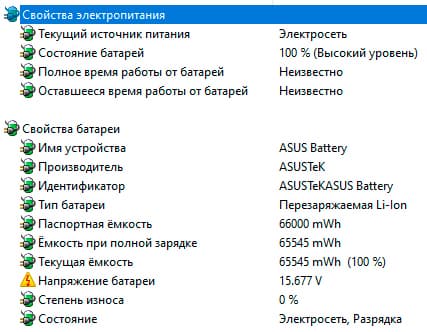 Он заряжает встроенный в ноутбук литий-ионный аккумулятор мощностью 66 Вт·ч и ёмкостью 4210 мА·ч с 6 до 99% за 1 час и 38 минут.