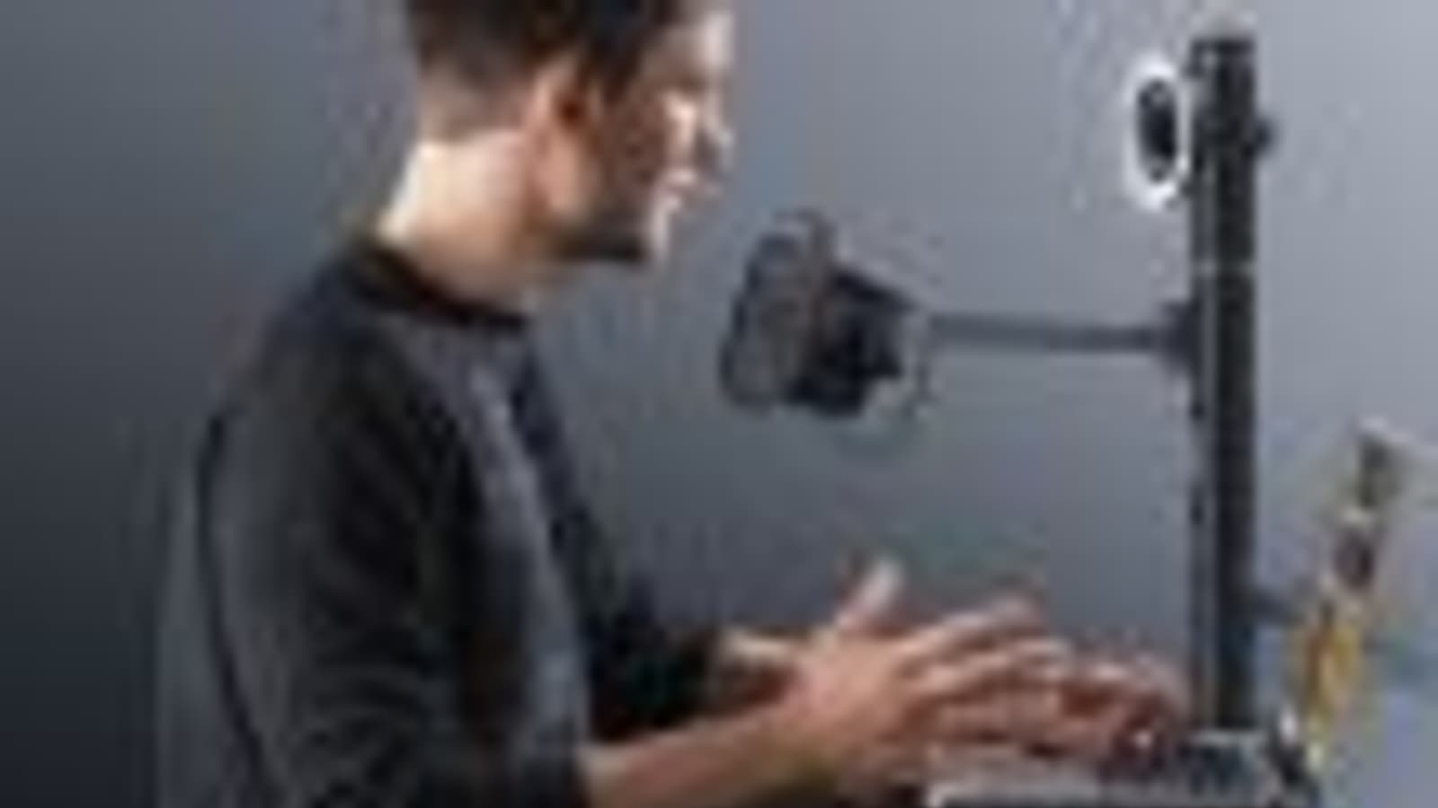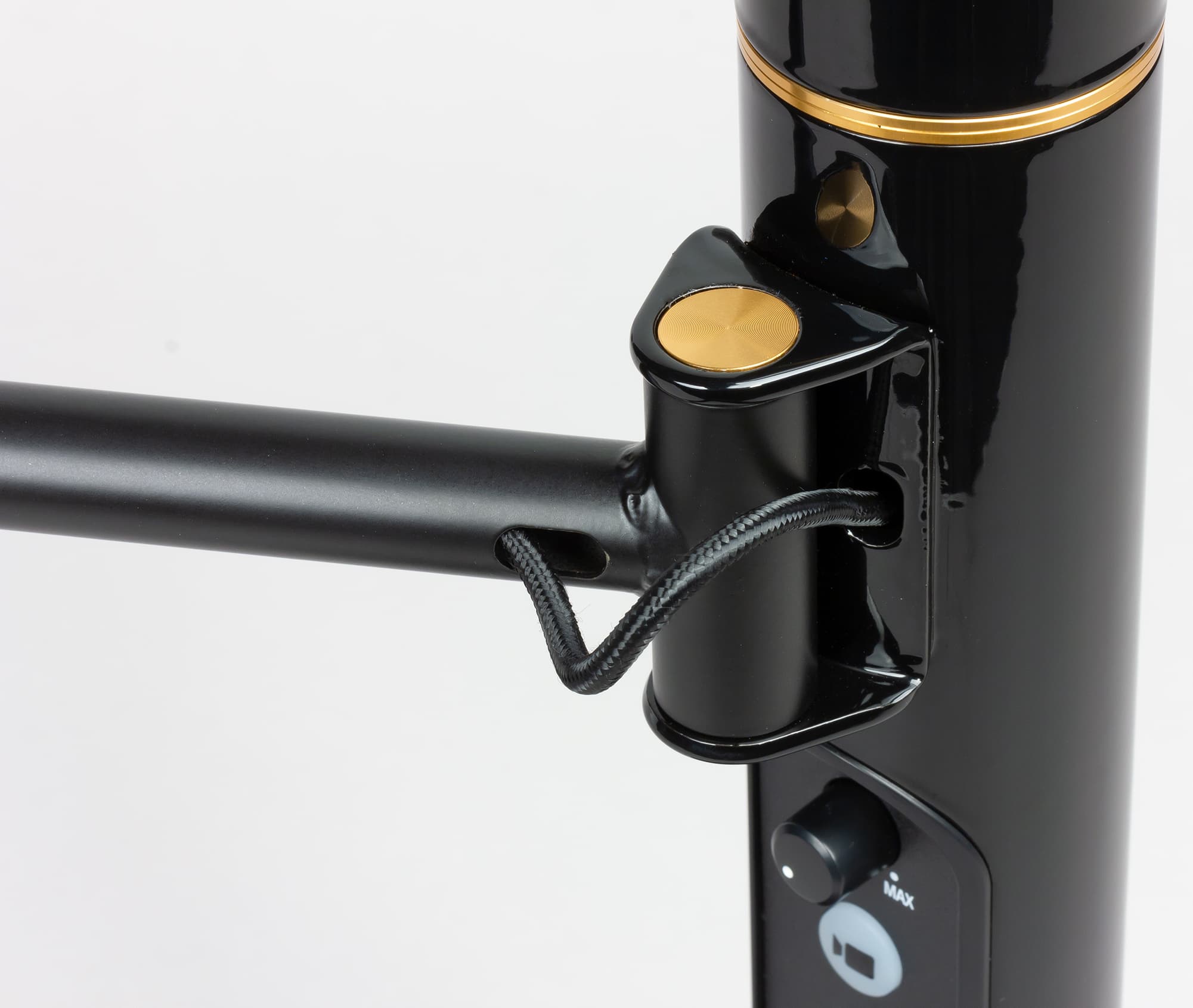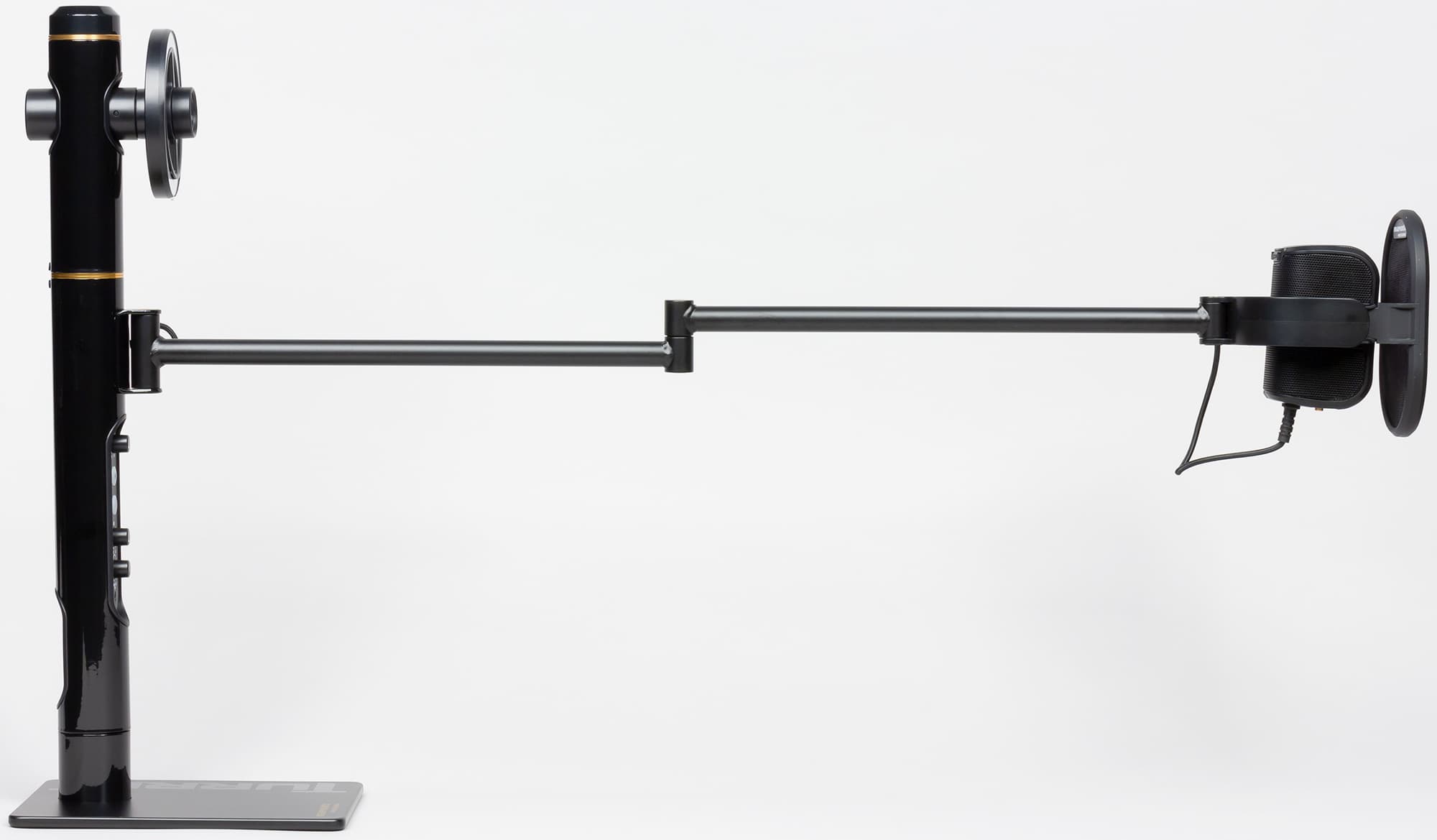 Под секцией камеры расположена секция микрофона, креплением для которого служит подвижная металлическая двухсекционная штанга, позволяющая как придвинуть микрофон вплотную к стойке, так и удалить его от неё практически на метр.