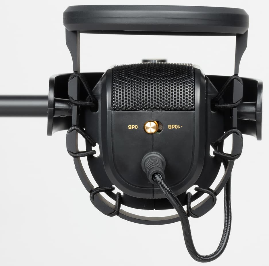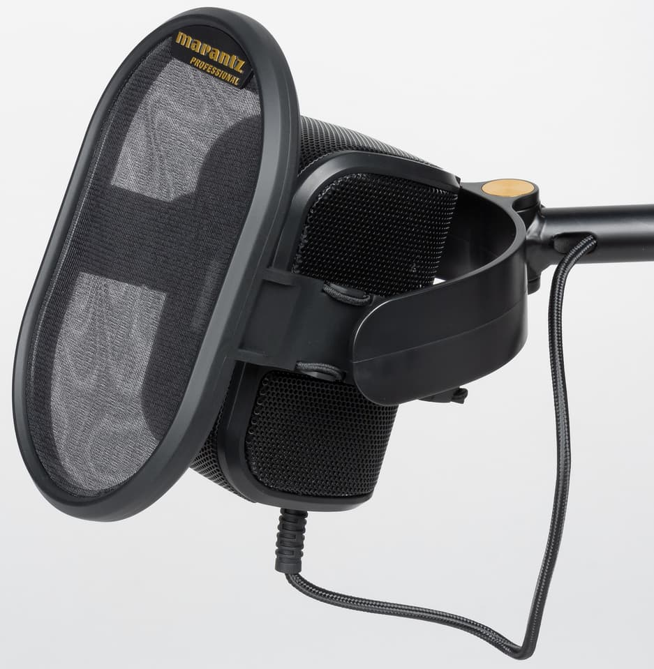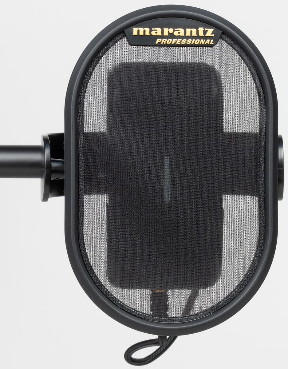 На секции микрофона также крепится встроенный нейлоновый двухсекционный поп-фильтр, предотвращающий искажения от взрывных согласных.