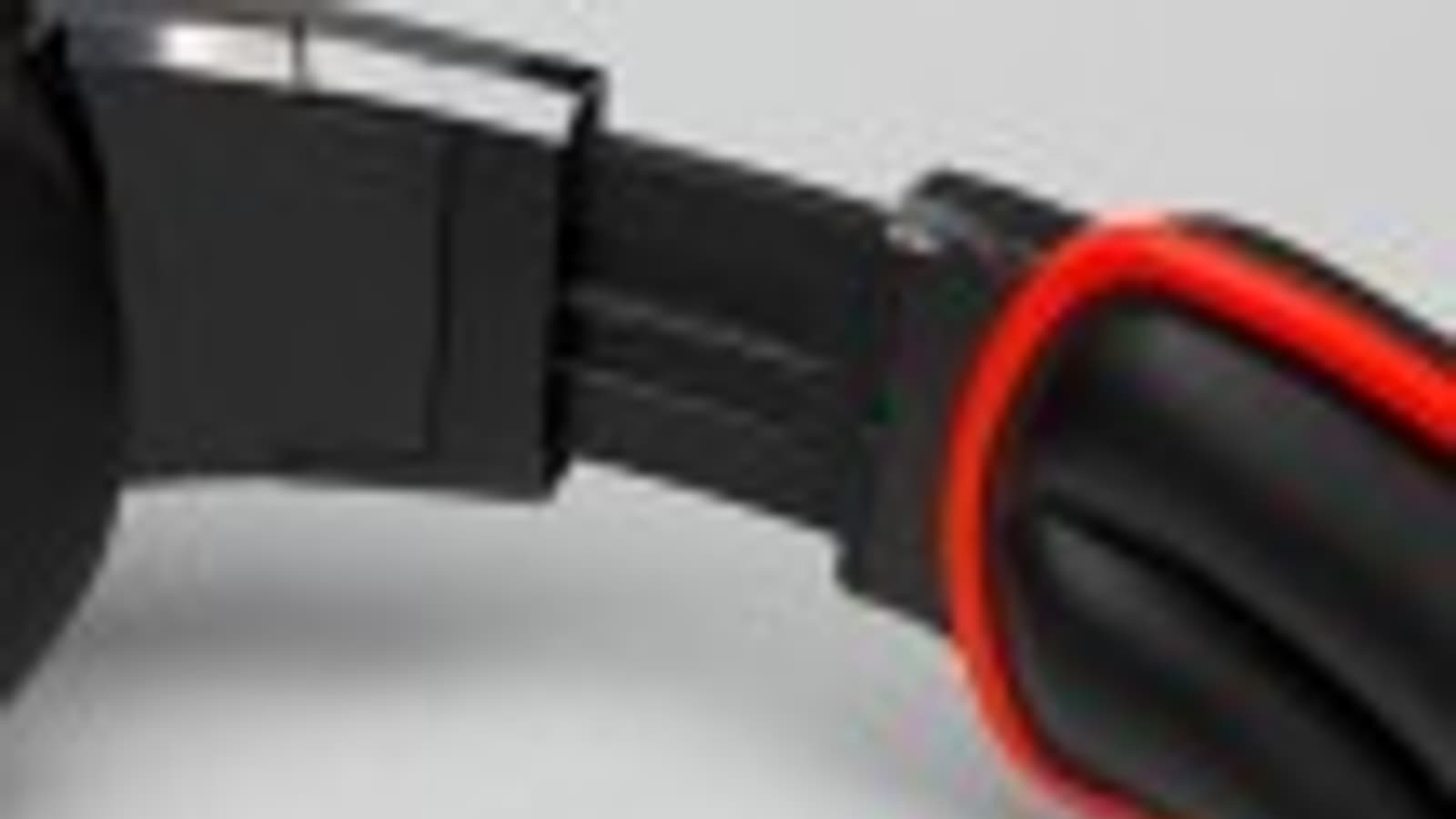 Оголовье здесь широкое и выполнено из крепкой упругой пластмассы. Верхняя его часть матовая, внизу установлены смягчающие вставки. По их контуру есть ободок красного цвета.